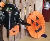 enfeitaram o átrio da Escola: bruxas, chapéus, morcegos, fantasmas e muito mais