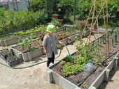 ervas daninhas do canteiro. Foram regadas as plantas e foram apanhados alguns