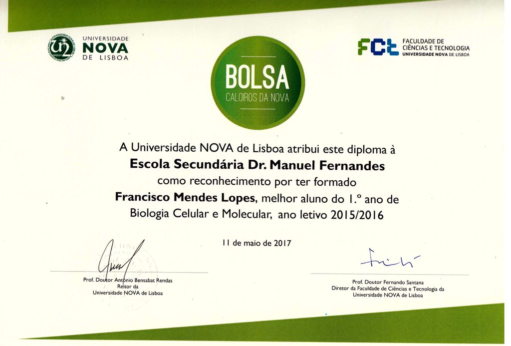 Chegaram boas notícias da Universidade Nova de Lisboa | Parabéns Francisco Lopes