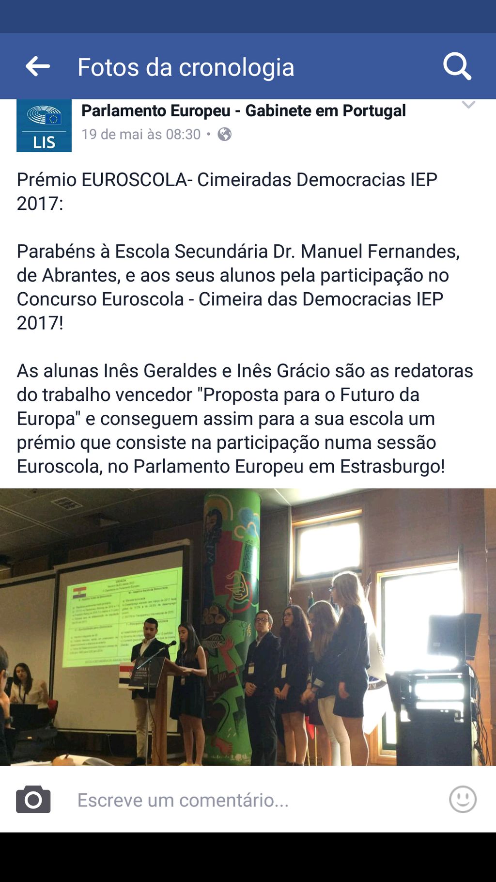 Escola vencedora do Concurso “Euroscola - Cimeira das Democracias IEP” |