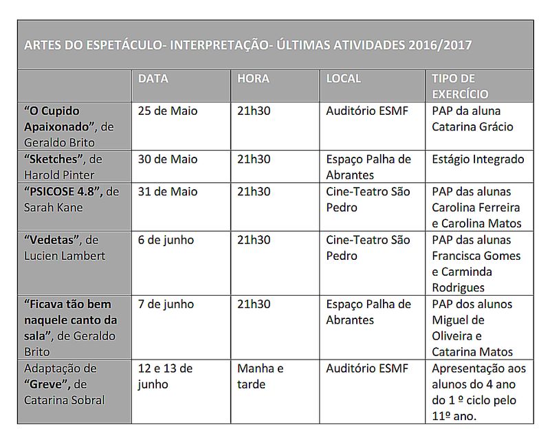 (Geografia C e Ciência Política), e os alunos do Curso Profissional de Artes e Espectáculos -